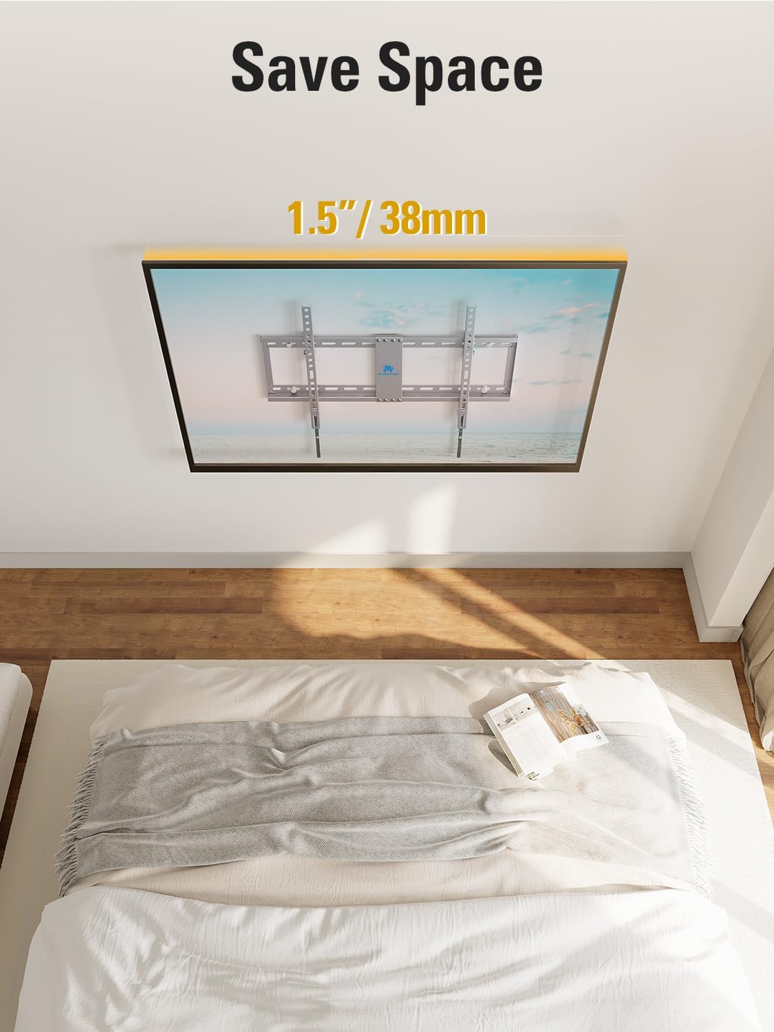 • [Low Profile Design] TV mount bracket sits only 1.5 inches from wall at 0 degree tilting angle, provides an ideal space-saving option with an attractive appearance.