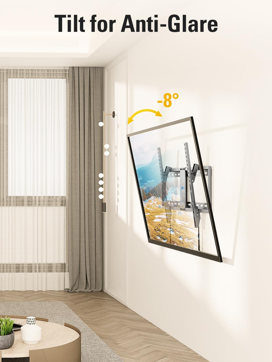 • [Tilt for Perfect Viewing Angel] This TV mount can tilt forward up to 8 degrees, which is great for glare reducing and provides much flexibility to adjust the viewing angle for better viewing experience.